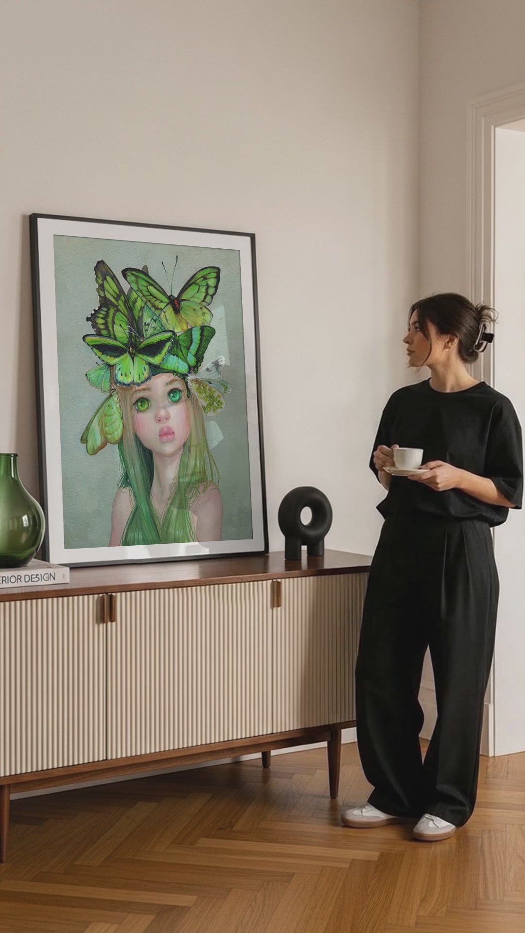 Enter the fluttering realm of Arianwen, a portrait that radiates the ethereal beauty of a young woman crowned with delicate butterflies. Each winged creature symbolizes freedom, power, and truth, weaving a story of elegance and strength around her. Her captivating gaze invites you to uncover the mysteries of her world, where beauty and resilience intertwine effortlessly. The soft, harmonious tones and intricate details bring Arianwen to life, leaving a lasting impression of grace and power.