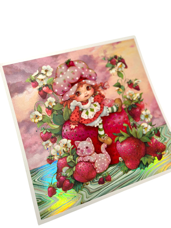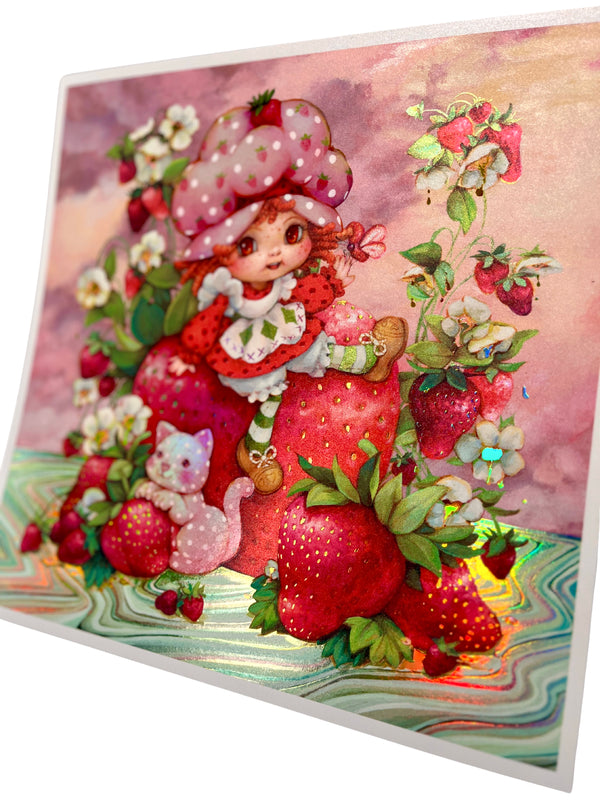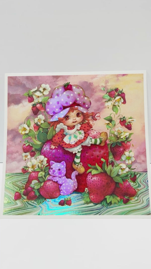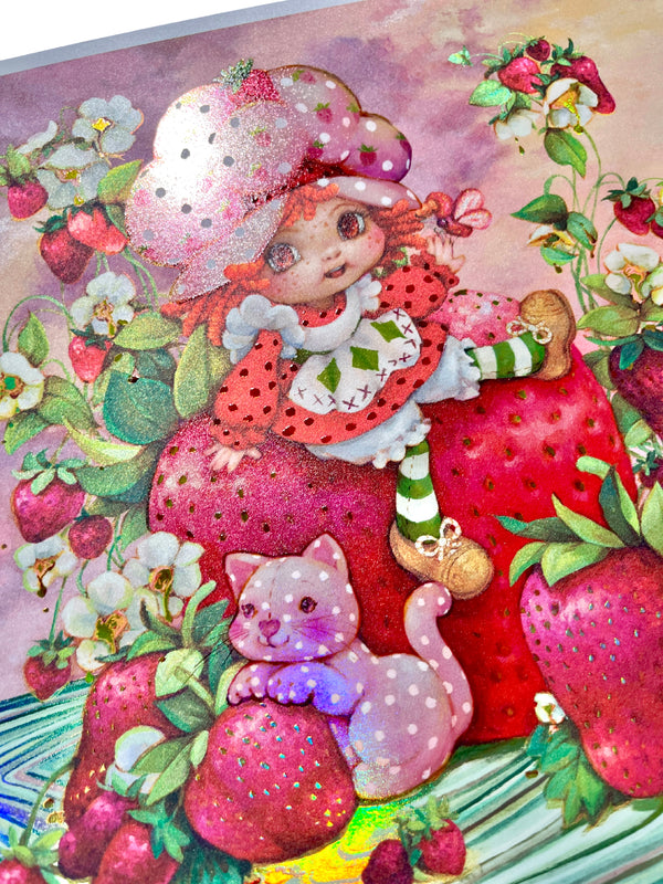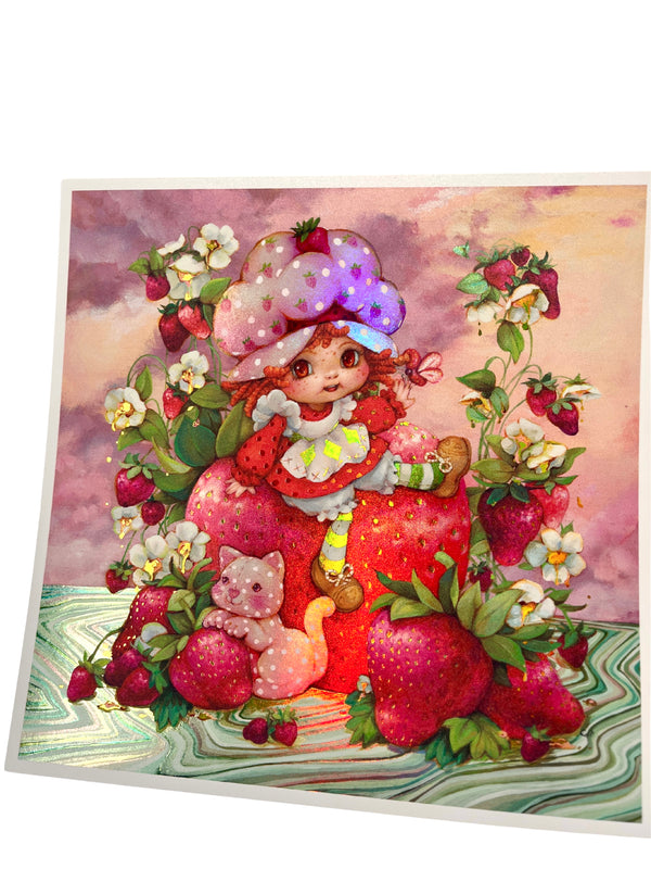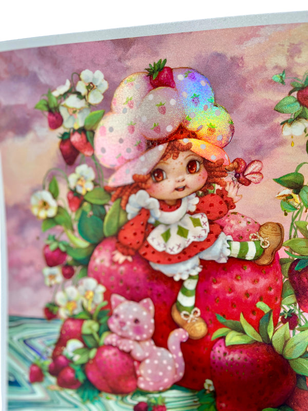 A berry sweet surprise is here! With WildBrain Studios’ blessing, I’m thrilled to present my officially licensed collaborative release of Berrylicious Strawberry Shortcake Fields—an incredible holographic limited edition print, available in only 200 numbered pieces, that comes with a certificate of authenticity! This print has so many delicious elements, intricate holographic details, and raised spot gloss, it’s a feast for the eyes!