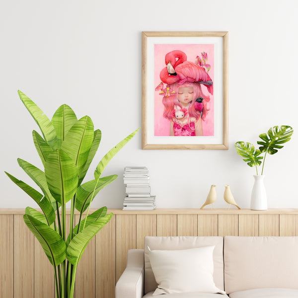 El rosa es un color tan amable y relajante, lleno de energía vibrante que puede ser estimulante y calmante a la vez. También es el color del amor, la emoción con la que infundí a "Rosea". Adora la naturaleza y todas las criaturas rosadas que la habitan. Rosea es la segunda pieza que lanzo de mi exposición individual de 2020 en la galería Corey Helford, "The Color Wheel". El color, y su ausencia, son comunicadores. La colección Color Wheel es conversacional y explora los límites emocionales y creativos.