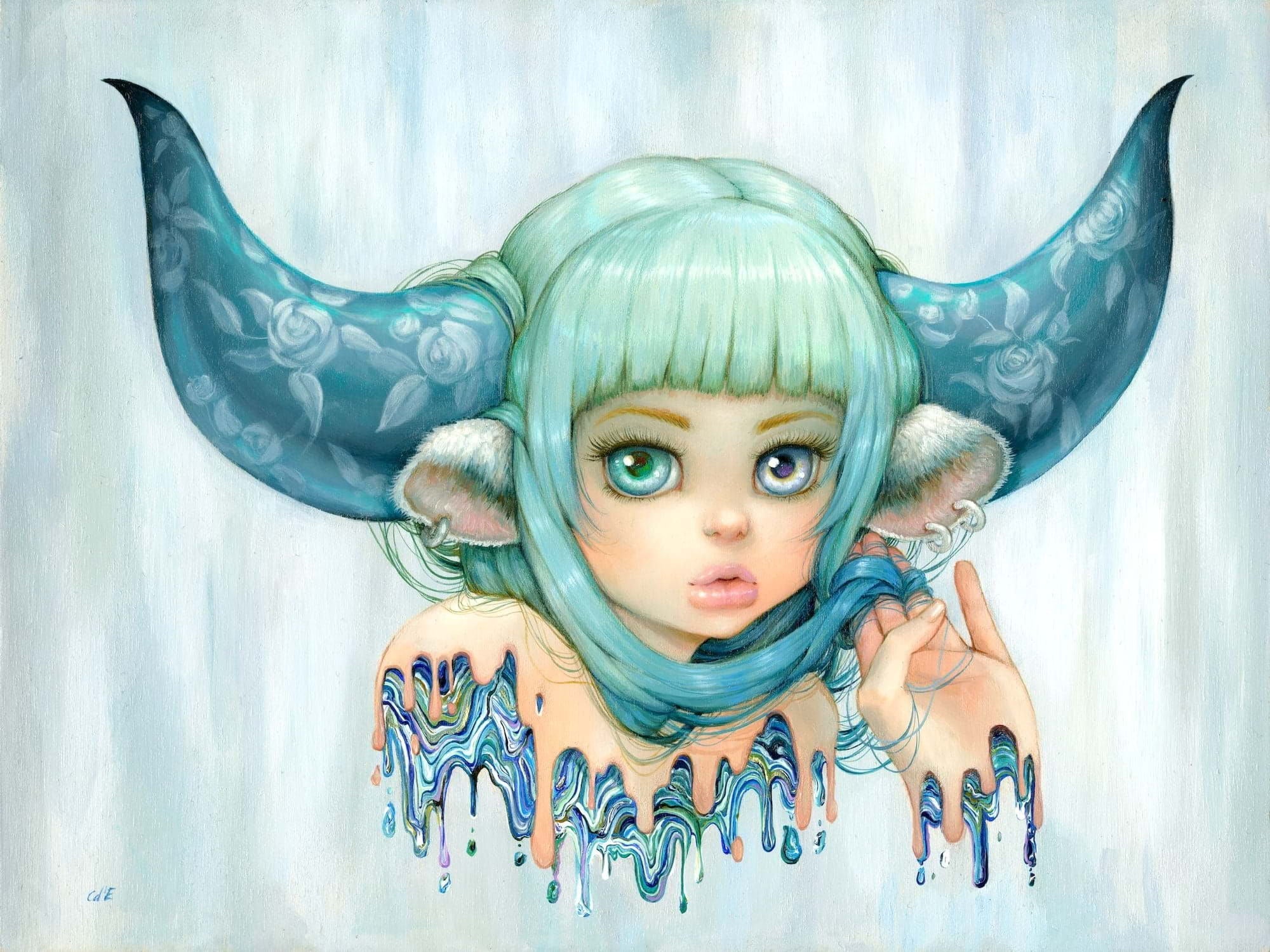 Tauro es sabio, protector y extremadamente confiable. Valora la seguridad y la constancia por encima de todo. Suele ser increíblemente dedicado y confiable, y hace amigos leales. Tiende a ser bastante testarudo y le desagradan los cambios. Quería mostrar la intensidad de Tauro. Su mirada está fija en el espectador, mostrando la estabilidad de su naturaleza. Quería cautivar al espectador con su lado más tierno, en los cuernos estampados y el cabello suelto que cambia de color con la misma delicadeza que su alma serena.