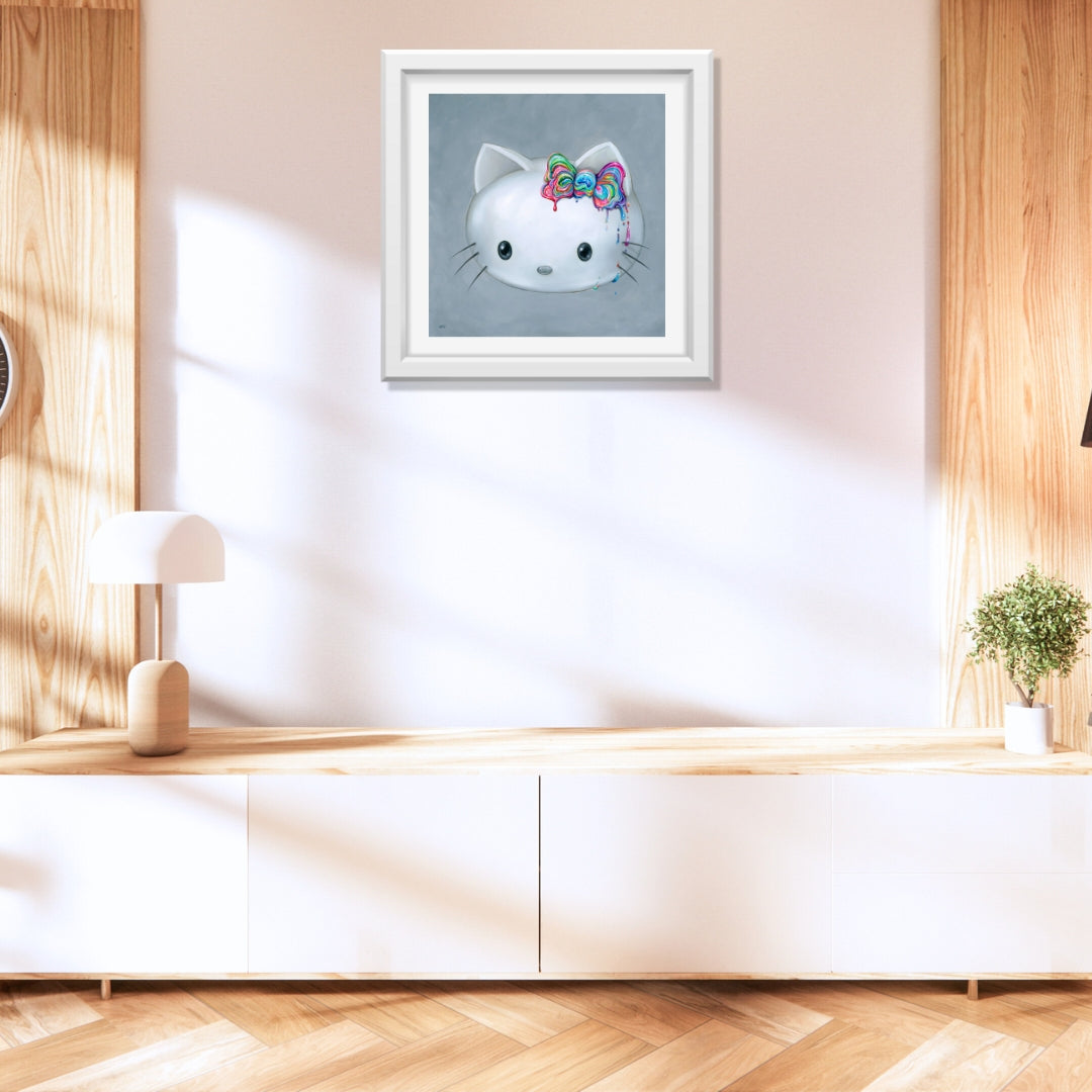 Available in a variety of open-edition print media and a budget-friendly 12x12 laser print version, Melty Kitty is the perfect splash of whimsy for your wall. Whether you're a die-hard Hello Kitty fan or just love your art with a side of rainbow chaos, this piece is guaranteed to make you grin and say, “Meow-mazing!”