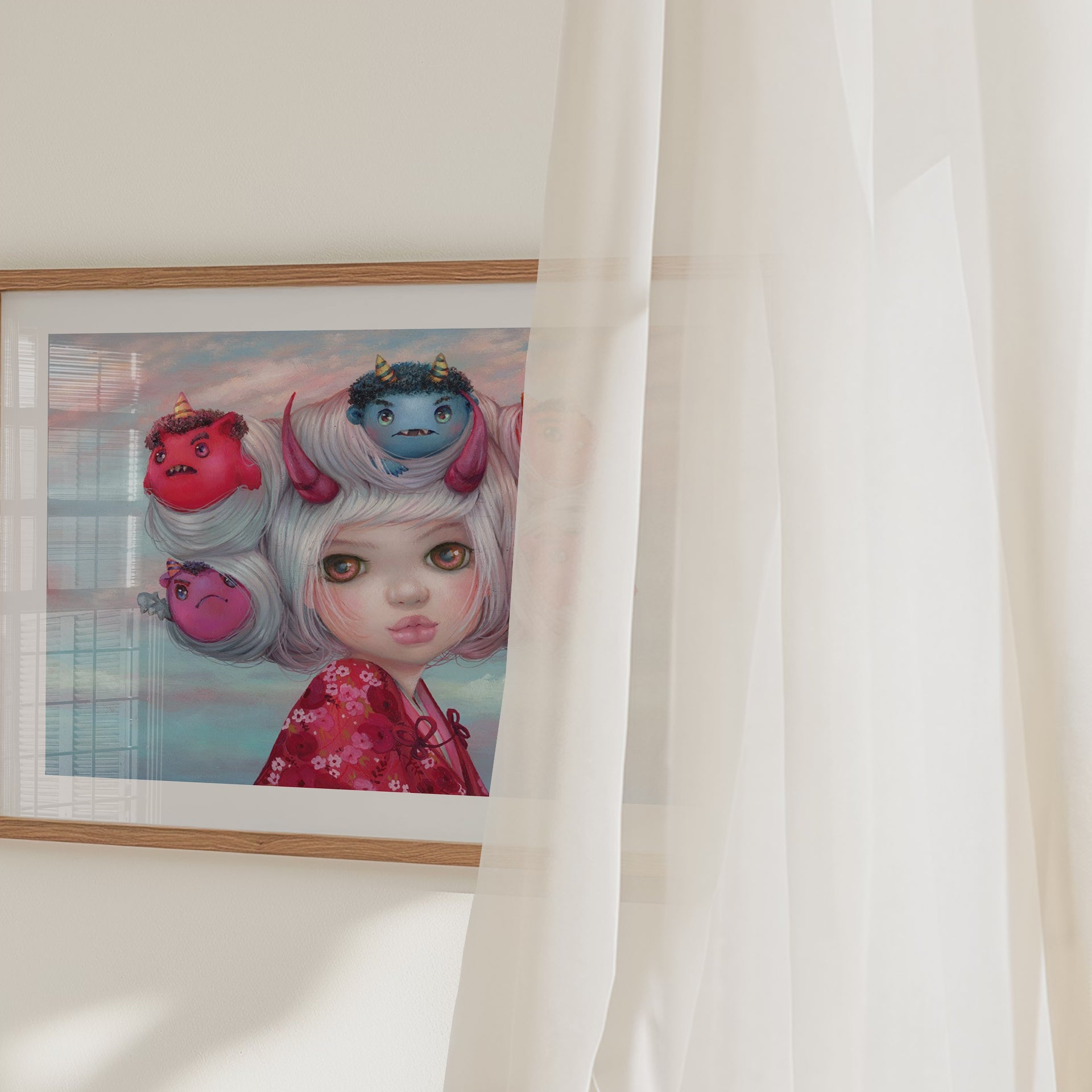 Devil-May-Hair - Oni art print, Japanese folklore art, Demon art